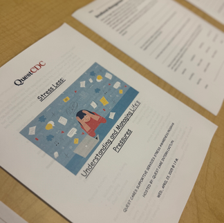 Participants explored the definition of stress, its common triggers, and both the physical and emotional symptoms it can cause. We also discussed healthy versus unhealthy coping strategies and practiced a mindfulness exercise to promote presence and grounding.